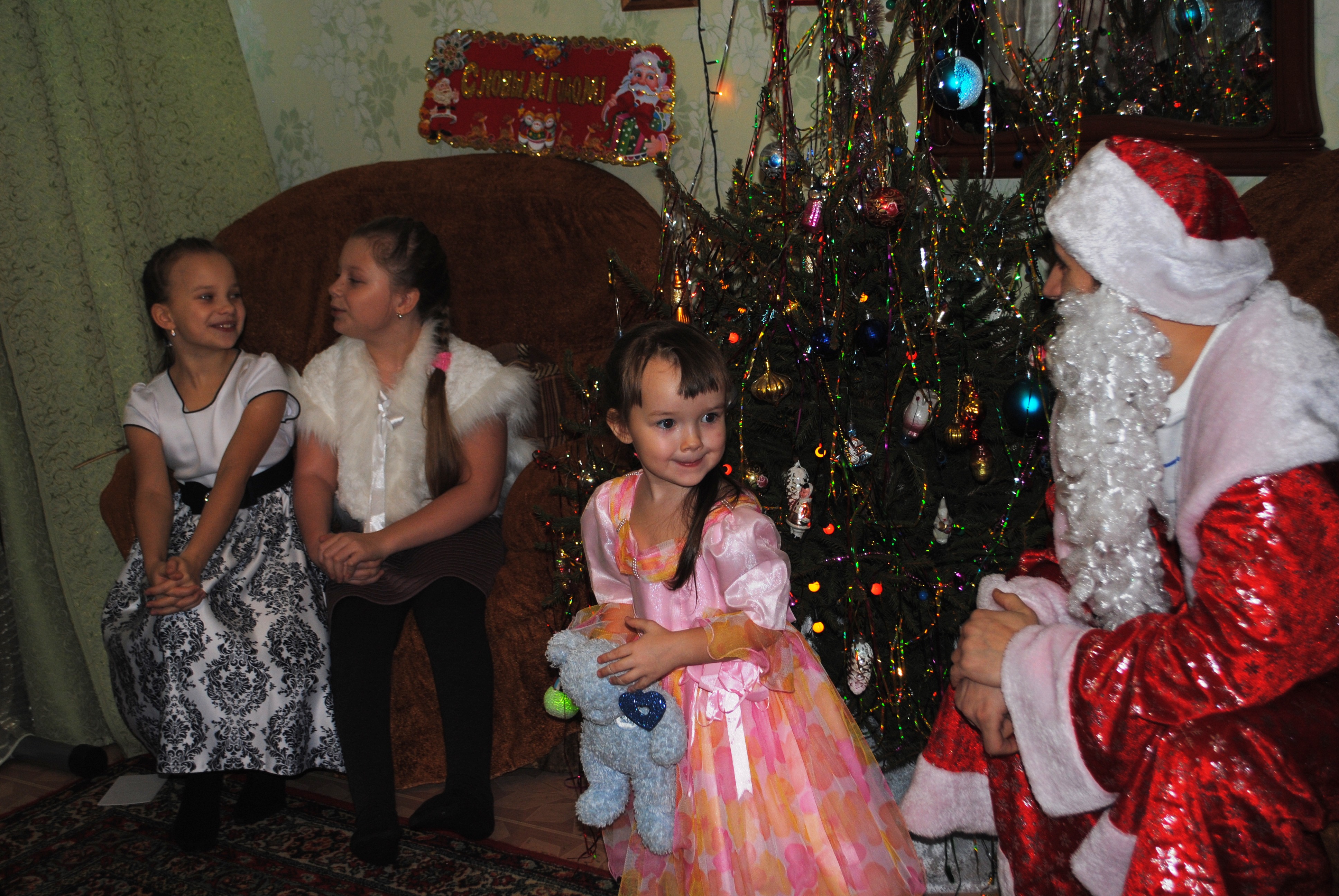 Некоторые из нас отважились стать на время праздников Дедами Морозами и Снегурочками и лично поздравили ребят, пройдя перед этим обучение в школе Дедов Морозов. Нам очень помогли репетиции и консультации опытных волонтеров из «Милосердия» и, их поддержка на самих поздравлениях.  И конечно, в автомобильной компании нашлось достаточно автоволонтеров, чтобы обеспечить транспорт артистам. Общими силами мы организовали подарки более чем  для 200 ребят! И как же приятно было видеть искреннюю радость мальчишек и девчонок от встречи с Ангелом, Снегурочкой и Дедом Морозом!