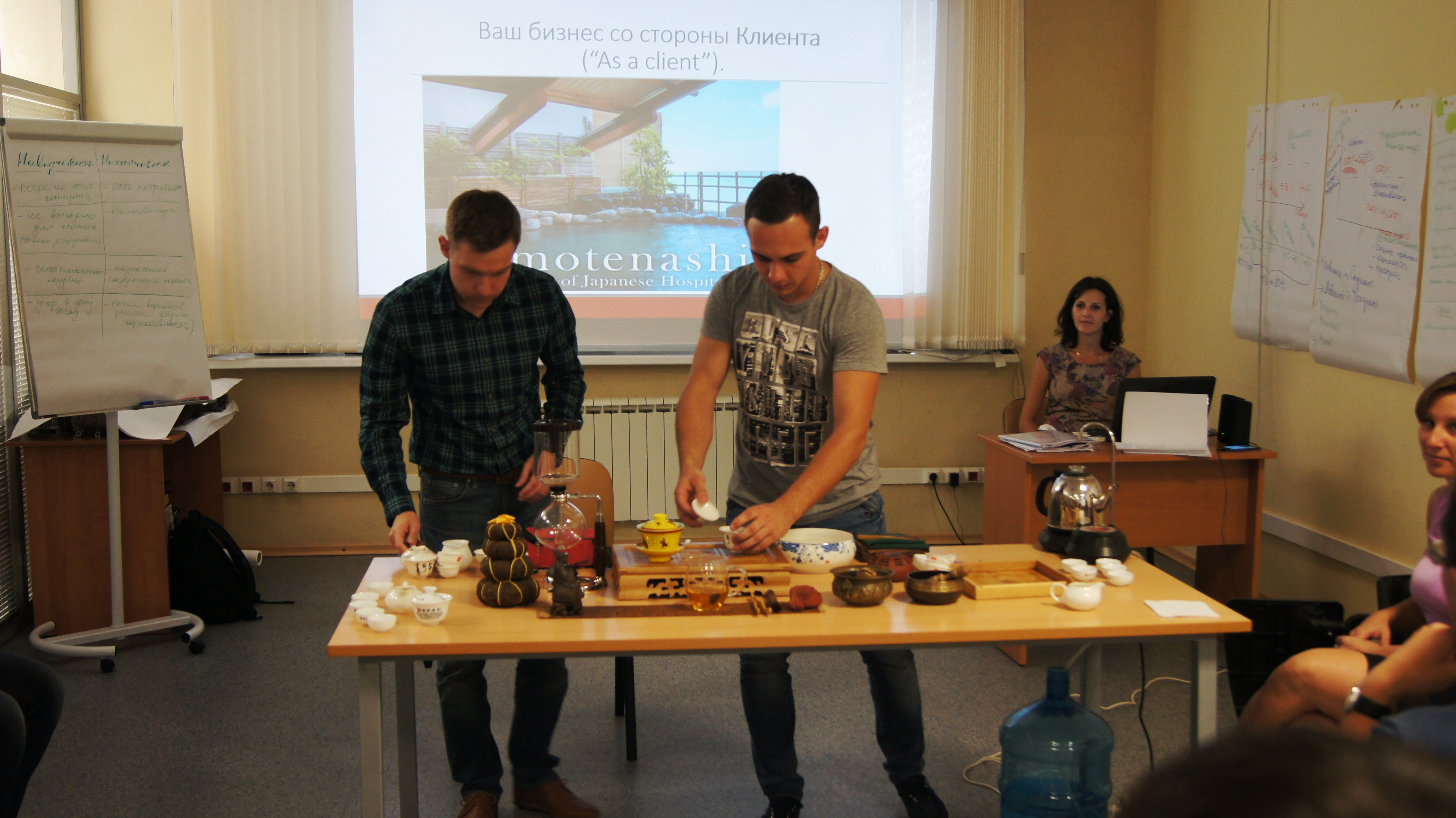 В ходе тренинга наши коллеги рассмотрели лучшие практики, собрали банк идей для повышения качества предоставления услуг, проанализировали жизненный цикл клиента-гостя и составили план мероприятий на каждую точку контакта с ним. И конечно, не обошлось без сюрпризов. Участники сами побывали в роли гостей и ощутили на себе секреты восточного гостеприимства, а затем и сами потренировались в проведении церемонии чаепития. Сотрудники службы контроля и соблюдения стандартов были приятно удивлены, когда к ним пришли с угощением наши персональные консультанты! Наверное, с желания сделать приятное и начинается удивительный сервис!
