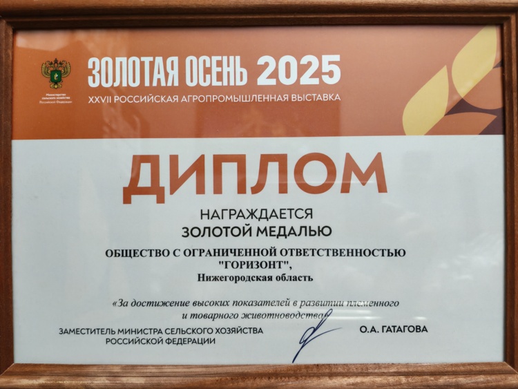 Наш Перевозский конный завод завоевал золотую медаль «За достижение высоких показателей в развитии племенного и товарного животноводства». Награду нам вручили на главной сельскохозяйственной выставке страны «Золотая осень-2025» в Москве, где ежегодно демонстрируются достижения российского сельского хозяйства.